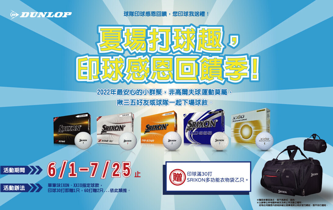 2022/06/01 至 2022/07/25 購買 SRIXON、XXIO 指定球款單筆印球