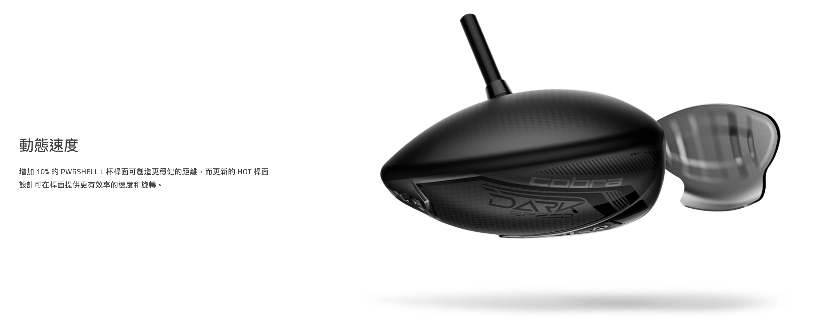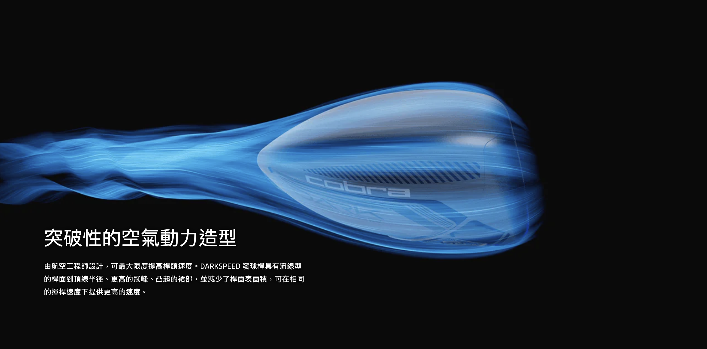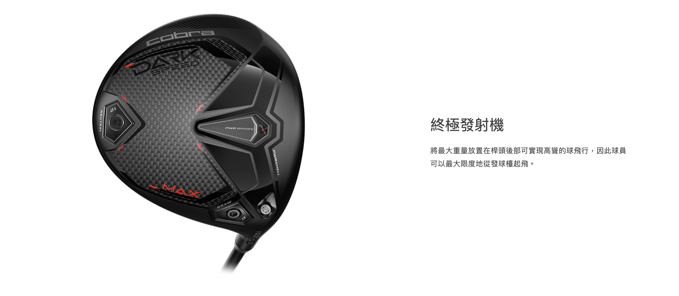 DARKSPEED 開球木桿系列由航太工程師設計,搭載更進化的空氣力學造型,擴大 PWRSHELL H.O.T. 桿面,結合更低且更向前移的 PWR-BRIDGE 配重系統,由裡到外升級科技性能,帶來超越世界的巔峰球速。