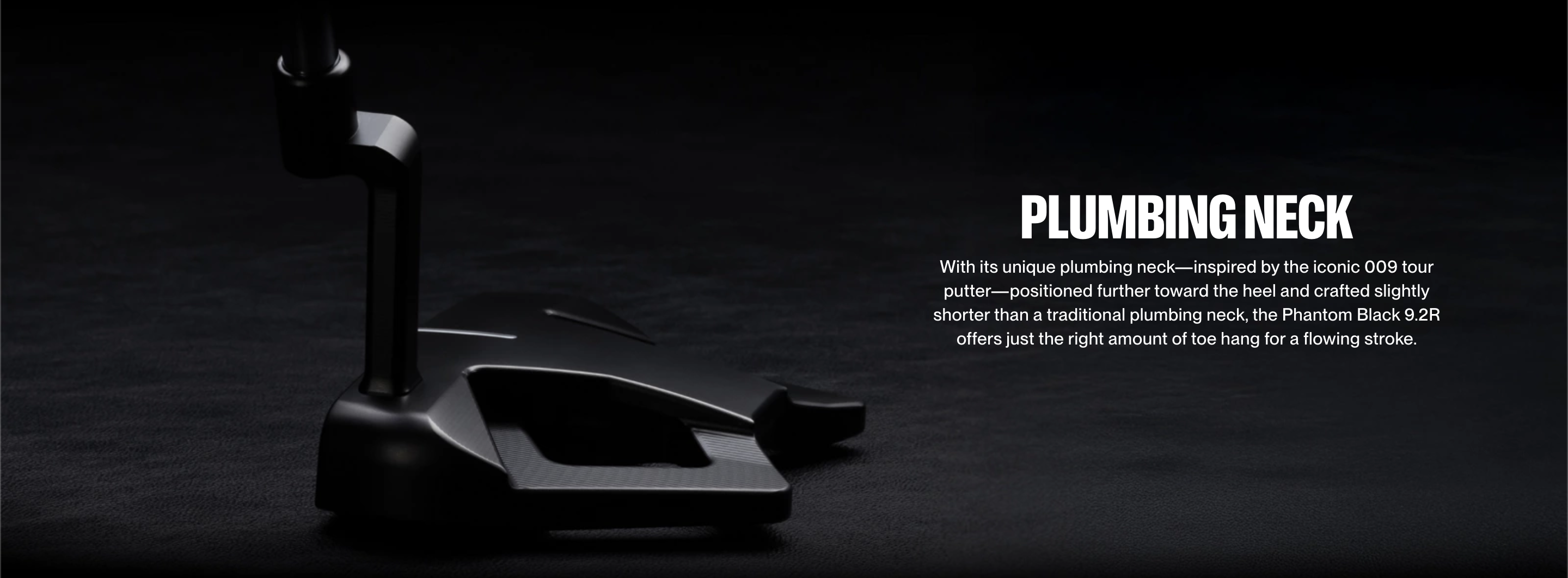 Phantom Black 9.2R 推桿採用獨特的管頸設計,靈感源自標誌性的 009 巡迴賽推桿,其位置更靠近桿跟,長度略短於傳統的管頸,從而提供恰到好處的趾部下垂,實現流暢的擊球。
