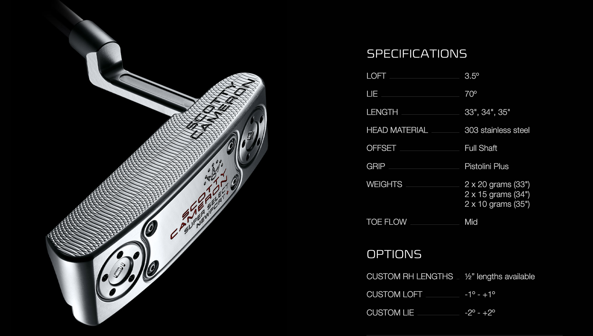 Super Select Newport Plus 具有比標準推桿尺寸稍寬的創新型輪廓,可提供獨特、令人充滿信心的瞄準視野並增加 MOI,同時保留與推桿相關的外觀和清晰的瞄準線。